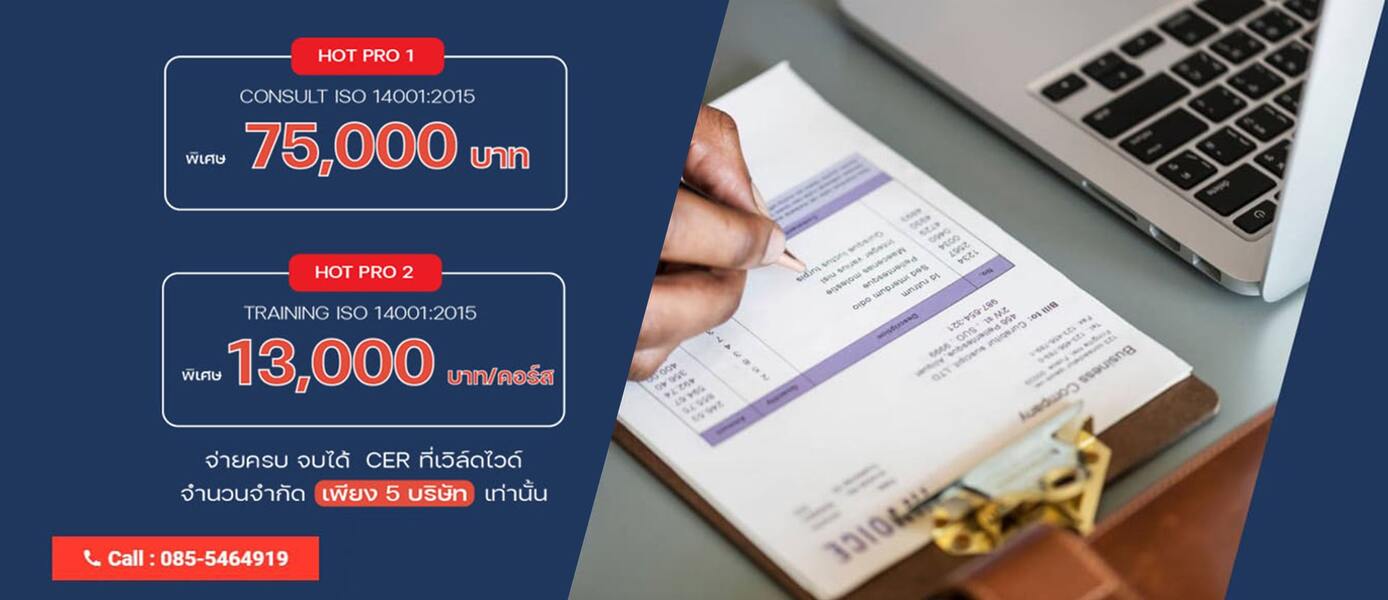 ISO14001 : 2015 หรือ ISO45001 : 2018 จะมีโปรโมชั่นเริ่มต้นอยู่ที่ 75,000 บาท จากราคาปกติ 91,000 บาท